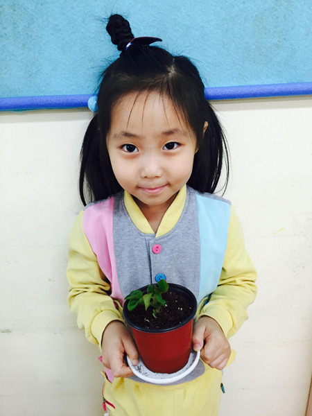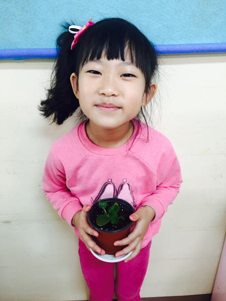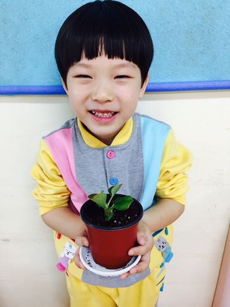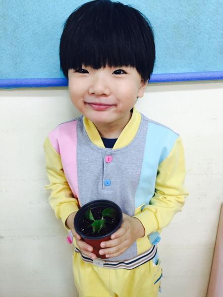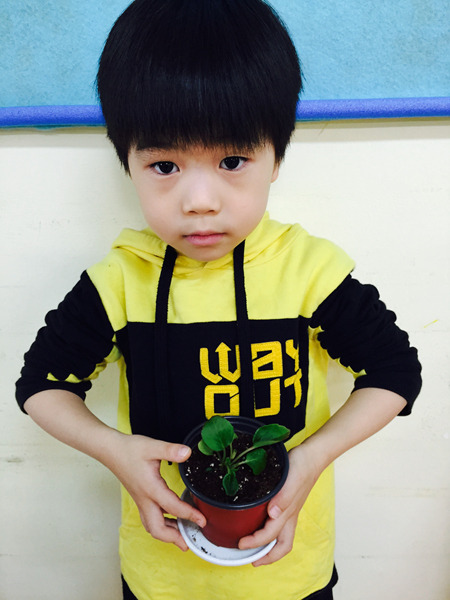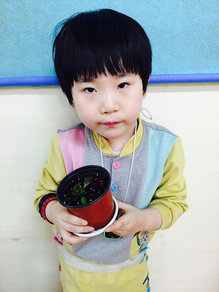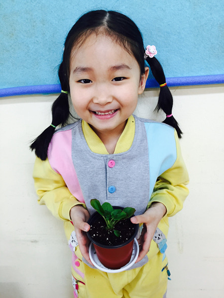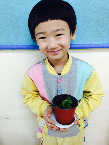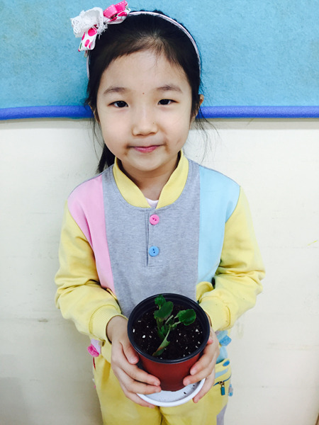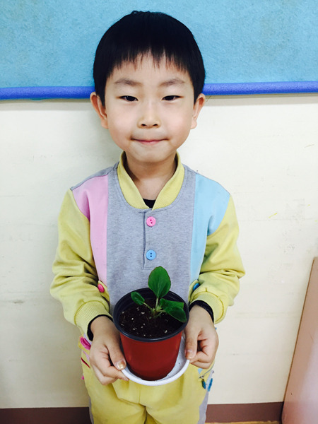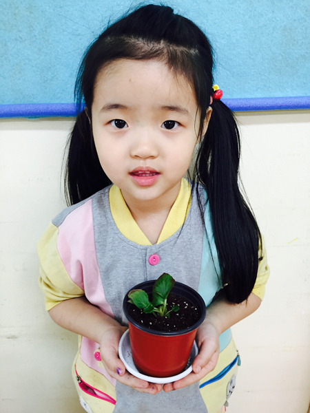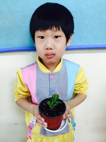 아이들이 심은 꽃 이름은 '베고니아' 입니다~ 공기를 깨끗하게 해주는 효과가 있는 꽃이라고 했더니