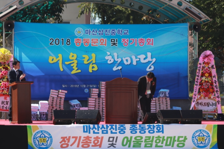 2018년10월21일마산삼진중총동문회및정기총회를집행부임원진의회장님총무님도움으로잘마쳤습니다