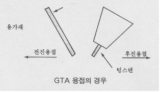 아르곤(또는 그외 불활성가스와 혼합)분위기 속에서 텅스텐 전극봉과 모재 사이에서 발생된 아크의 열로 모재와 용가재(용접봉)를 녹여 접합하는 용접 방법. 이것의 하얗게 보이는 노즐을 용접선에 겨냥해서 작동시키면 주행 레일 없이 노즐 좌우의 롤러만이 부재의 벽에 붙어서 일직선으로 진행 용접기와 와이어 피다는 CO2용접용 그대로 사용 토오치만 기기에 그림 처럼 장착하거나 또는 전용 토오치를 사용