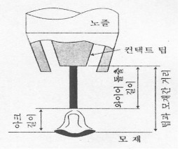 돌출길이 / stick-out, electrode extension 접촉팁의 끝에서 와이어가 돌출해 있는 길이를 말한다.