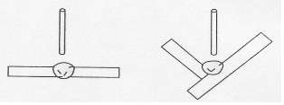 ●용입부족 원인 ① 이음매 설계의 결함 ② 용접속도가 빠를 때 ③ 용접전류가 낮을 때 ④ 용접봉 선택불량 대책 ① 루트 간격, 루트 표면의 칫수를 조절한다. ② 용접속도를 줄이고, 슬래그가 선행하지 않도록 한다. ③ 슬래그의 피포성을 해치지 않는 범위까지 전류를 높인다. ④ 적당한 봉경 및 용입이 좋은 종류를 선택한다. ●언더컷(UnderCut) 원인 ① 전류가 높을 때 ② 아-크 길이가 길때 ③ 용접봉취급이 부적당 ④ 용접속도가 빠를 때 대책 ① 낮은 전류를 사용한다. ② 아-크 길이를 짧게 한다 ③ 용접봉의 유지각도를 바꾼다 ④ 용접속도(운봉)을 천천히 한다. ●오우버랩 (Overlap) 원인 ① 용접전류의 과소 ② 운봉 및 용접봉 유지 각도의 부적당 대책 ① 전류, 용접속도의 적당한 선택 ② 수평 필렛 경우는 용접봉의 유지각도를 알맞게 선택한다. ●슬래그혼입 원인 ① 전층의 슬래그 제거가 불완전할 때 ② 운봉조작의 불완전, 전류가 낮을 때 ③ 용접개선의 부적당. ④ 슬래그 유동성이 빨리 냉각하기 쉬운 경우 ⑤ 봉각도의 부적절. 대책 ① 전층의 슬래그는 충분히 제거 청소해 놓는다. ② 전류를 약간 높게하고, 운봉을 적절히 한다. ③ 용접조작이 쉽게 설계한다. ④ 용접부의 예열 ⑤ 봉의 유지각도가 용접방향에대해 적절하도록 한다. ●기공(Porosity) 원인 ① 용접분위기 중에 과잉된 수소 또는 CO2가스 ② 용접부의 급격한 응고 ③ 모재중의 유황 함유량이 많을 때 ④ 강재에 부착한 기름,페인트 및 녹 ⑤ 아-크의 길이, 전류 또는 조작의 부적당 대책 ① 용접봉을 바꾼다 ② 위이빙을 하여 열량을 증가하던가 예열한다. ③ 충분히 건조된 저수소계 용접봉을 사용한다. ④ 강재의 표면을 깨끗하게 한다. ⑤ 정해진 범위내의 전압으로 약간 긴아-크를 사용하므로서 용접법을 조절한다. ●스패터(Spatter) 원인 ① 전류가 높을 경우 ② 용접봉의 흡습 ③ 아-크 길이가 길 때 ④ 아-크 블로우가 과대 대책 ① 모재두께, 봉경에 적당한 전류까지 낮춘다. ② 충분히 건조하여 사용한다. ③ 폭이 넓은 위이빙을 행한다. 적절한 아-크 길이로 한다. ④ 교류용접기를 사용한다. 어스의 위치를 변경한다. ●변형과 뒤틀림 원인 ① 용접부의 설계가 부적당. ② 모재의 과열 ③ 용접속도가 느릴때 ④ 용접순서가 부적당 ⑤ 조임이 나쁠때 대책 ① 팽창, 수축력을 감안한 설계를 한다. ② 낮은 전류를 사용하고 용입이 적은 용접봉을 사용한다. ③ 용접속도를 빠르게 한다. ④ 용접순서를 변경한다. ⑤ 완전한 치구를 사용한다. ●비이드외관불량 원인 ① 전류가 높거나 낮을 때 ② 운봉방법의 불량 ③ 용접부의 과열 ④ 사용용접봉의 결함 ⑤ 모재가 더러울 때 ⑥ 모재에 요철(쬜쬝)이 많은 경우 대책 ① 적당한 전류로 조정한다. ② 적당한 용접속도로 일정한 운봉을 한다. ③ 용접부의 과열을 피한다. ④ 건조된 용접봉을 사용한다. ⑤ 용접부의 녹이나 더러운 것을 제거한다. ⑥ 용접전류를 적정범위까지 올려 운봉을 빠르게 하고, 봉각도를 적당히 잡는다. ⑦ 용접전류, 운봉속도를 적정범위까지 낮춘다. ●균열 원인 ① 이음의 강성이 클 경우 ② 용착금속의 결함 ③ 부적당한 용접봉사용. ④ 용착이 잘 안된다. ⑤ 모재의 C, Mn등 합금원소가 높을 때 ⑥ 과대전류에서 과대 속도로 용접했을 때 대책 ① 예열과피이닝을한다.후퇴용접법의용접순서를사용한뒤비이드단면적을크게한다. ② 기공과 슬래그 혼입이 없도록 한다. ③ 적당한 용접봉을 선택하고 또 한 습기를 감소시킨다. ④ 루우트갭을 감소시키고 개선의 표면에 여성한다. (버터링) ⑤ 예열, 후열을 시행하고, 저수소계 용접봉을 사용한다. ● 피트 원인 ① 모재중에 C, Mn 등의 합금원소가 많을 때 ② 이음부에 유지, 페인트, 녹 등이 부착돼있을 때, 또 용접봉, 용접부에 습기가 많을 때 대책 ① 염기도가 높은 용접봉을 택한다. ② 이음부를 잘 청소하고, 또 예열 혹은 용접봉을 건조하여 사용한다. 혼합가스용접(MAG) ●기공(Porosity) 원인 ① 가스의 공급상태가 불안정하다. ② 차폐가스 중 수분함량이 많다. ③ 아-크가 불안정하다. ④ 와이어에 수분이 흡습 되었다. ⑤ 용접부에 오물이 묻어있다. 대책 ① 가스의 유량 및 압력조정 요망 ② 순도가 높은 CO2 사용 요망 ③ 회로접촉 및 송선장치 점검요망 ④ 사용전 200℃에서 1시간 재건조 ⑤ 용접부분 청소 ●스패터(Spatter) 원인 ① 전압이 높을 때 ② 용접전류가 낮을 때 ③ 모재온도가 높을 때 ④ 아-크가 불안정할 때 대책 ① 적정 전압 사용 ② 적정 전류 사용 ③ 모재냉각 및 층간온도 조정 ④ 회로접촉 및 송선장치 점검 ●언더컷(Undercut) 원인 ① 전압이 높을 때 ② 운봉속도가 빠를 때 ③ 전류가 높을 때 대책 ① 적정 전압 사용 ② 적당한 운봉법 사용 ③ 적정 전류 조정 ●필렛각장의부족 원인 ① 전압이 높을 때 ② 토치의 위치각도가 부적당 ③ 운봉속도가 적당치 않을 때 대책 ① 적정전압 사용 ② 적당한 운봉법 사용 ③ 적정전류 조정 ●비이드외관불량 원인 ① 전압이 높을 때 ② 운봉속도가 빠를 때 ③ 모재가 과열되었을 때 ④ 운봉속도가 부적합할 때 ⑤ 노즐과 모재간의 거리가 멀 때 대책 ① 적정전압 사용 ② 운봉속도 조정 ③ 층