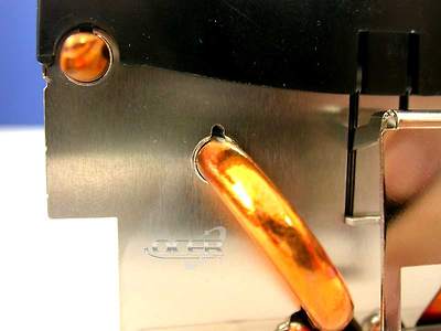 히트 파이프는 이미 몇십년 전에 나온 물건이지만 컴퓨터 쿨러에 쓰이기 시작한건 최근 몇년 사이의 일이며, CPU 쿨러부터 그래픽카드 쿨러에 심지어 케이스까지 급속하게 사용이 늘어나고 있습니다. 오늘은 이 히트 파이프에 대해서 알아보도록 하겠습니다. 히트파이프의 원리는 매우 간단합니다. 동작 유체의 증발과 응결을 통해 열을 전달하는 것입니다. 구리로 만든 파이프를 진공으로 만든 후 동작 유체를 집어 넣습니다. 이 유체가 파이프의 한쪽 끝에서 열을 받아 증발하고 이 증발된 기체가 다른쪽 끝에서 냉각되는 과정을 반복 순환하면서 열을 식히는 것입니다. 히트파이프에 들어가는 유체는 히트파이프의 냉각 온도 범위에 따라서 달라집니다. 알콜, 물, 수은 등등 다양합니다. ![]() 히트파이프의 구조도 전세계적으로 히트파이프를 만드는 회사는 5곳이 있으며 그중에서 컴퓨터 부분에 히트 파이프를 최초로 응용한 곳은 바로 AVC로, 30%를 차지하고 있습니다. 이러한 회사들의 히트파이프 제조 기술은 모두 일본에서 시작된 것으로, 그 본질은 차이가 없습니다. 구체적인 히트 파이프 제조 기술은 비교적 복잡하지만 히트파이프의 공업화 발전으로 인해 히트파이프 생산 그 자체는 그리 어렵지는 않으며 가격 역시 계속 낮아지고 있습니다. 히트 파이프 외벽은 철, 알루미늄, 구리 등을 사용할 수 있지만 컴퓨터 쿨러는 대부분 구리를 사용합니다. 컴퓨터 쿨러에 쓰이는 히트파이프는 대부분 직경 6mm짜리이며 8mm짜리도 간혹 사용하긴 합니다. ![]() 8mm짜리 히트파이프를 사용하는 쿨러 히트파이프의 길이는 일반적으로 100~300mm 사이이며, 가격은 히트파이프 한개에 몇천원 정도 밖에 하지 않습니다. 때문에 히트파이프를 사용하는 쿨러의 제조 단가가 전통적인 공냉 쿨러보다 그리 비싸지 않은 것입니다. 히트파이프의 모세관 구조 히트파이프의 모세관은 3가지 작용을 하는데 첫번째는 냉각된 유체가 다시 열원이 있는 곳으로 이동하는 통로이고, 두번째는 내벽과 유체 혹은 증발된 기체 사이의 열을 전환하는 통로이며, 세번째는 유체와 증발된 기체가 모세관 압력을 만들어내는데 반드시 필요한 틈을 제공합니다. 모세관 구조는 스크린, 펠트, 파우더, 그루브의 4가지 종류가 있습니다. 컴퓨터 쿨러에서 대부분을 차지하는 것은 파우더와 그루브인데 파우더가 80%, 그루브가 20% 정도를 차지하고 있습니다. 스크린 ![]() 펠트 ![]() 그루브 ![]() 파우더 그루브 방식의 히트 파이프는 만들기가 간단하며 제조 단가도 일반 파우더 방식의 히트파이프의 2/3 수준입니다. 하지만 그루브-히트파이프에 파인 홈-의 깊이와 너비가 어느 정도 맞아야 하며, 장착 방향에 큰 영향을 받습니다. 뿐만 아니라 히트 파이프를 구부려서 사용할때 이러한 그루브 방식의 방향성은 치명적인 결점이 되어 냉각 능력에 큰 손실을 줍니다. 파우더 방식은 제조가 비교적 복잡하고 제조 단가가 비쌉니다. 금속 가루-대게 구리-를 소결하여 파이프 안쪽에 붙이는 것으로, 금속 가루의 질량, 순도, 직경, 소결 온도, 소결 균일화 등등 비교적 높은 기술을 필요로 하며, 각 회사마다 제조 방식에 차이가 있기 때문에 냉각 능력 역시 각양 각색입니다. 싸구려 히트파이프 쿨러들을 보면 히트파이프를 썼다고 대대적으로 광고하면서도 외벽은 알루미늄이고 파우더 방식도 아닌 히트파이프를 쓰는 경우가 많은데 이런 히트파이프 쿨러의 성능이 당연히 좋을 리 없겠습니다. 히트파이프의 꼬리 히트파이프의 길이는 일반적으로 100~300mm인데 컴퓨터 쿨러에서 이렇게 긴 히트파이프를 사용할 수 있을 리가 없기 때문에 당연히 잘라서, 다시 사용할 수 있도록 자른 부분을 봉합해야 합니다. 이렇게 잘려나간 히트파이프의 끝부분은 히트파이프로서의 기능을 수행하지 못합니다. ![]() 꼬리 1 ![]() 꼬리 2 이렇게 냉각 능력이 없는 히트파이프 끝부분은 쿨러 밖으로 나와 있어야 합니다. 그러나 쿨러의 제조 단가를 낮추기 위해 이런 냉각 능력이 전무한 끝부분을 쿨러 안쪽으로 집어넣어, 열읍 흡수하는 부분에 이런 꼬리가 안으로 들어가 있다면 그만큼 열을 받아들이는 면적이 줄어들어 효율이 떨어지게 되며, 열을 방출하는 부분에 이런 꼬리가 들어가 있으면 열의 발산 능력이 그만큼 떨어지게 되는 것입니다. ![]()