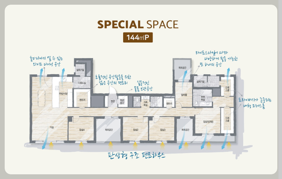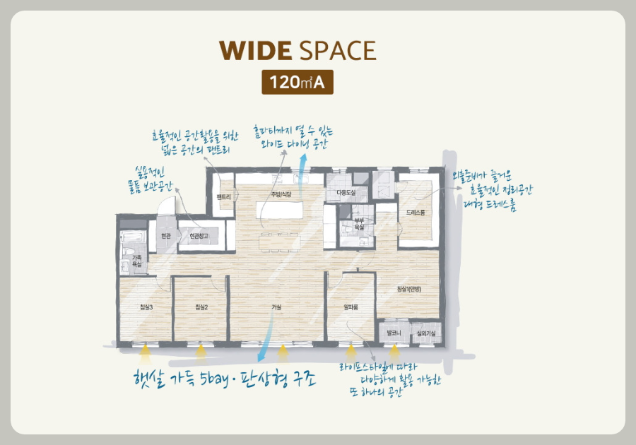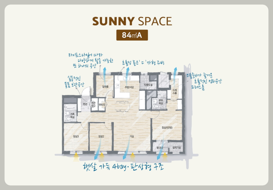 다양한 평형으로 구성되어 있어요. 84㎡, 101㎡, 119㎡ 등 여러 가지 선택지가 마련되어 있어, 가족의 필요에 맞는 평형을 선택할 수 있어요. 각 세대는 효율적인 공간 활용과 현대적인 인테리어로 설계되어 있어요.