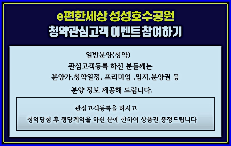 꿈꾸신다면 정말 좋은 기회가 될 수 있답니다! 성성호수공원의 쾌적함과 도심의 편리함을 함께 누리면서