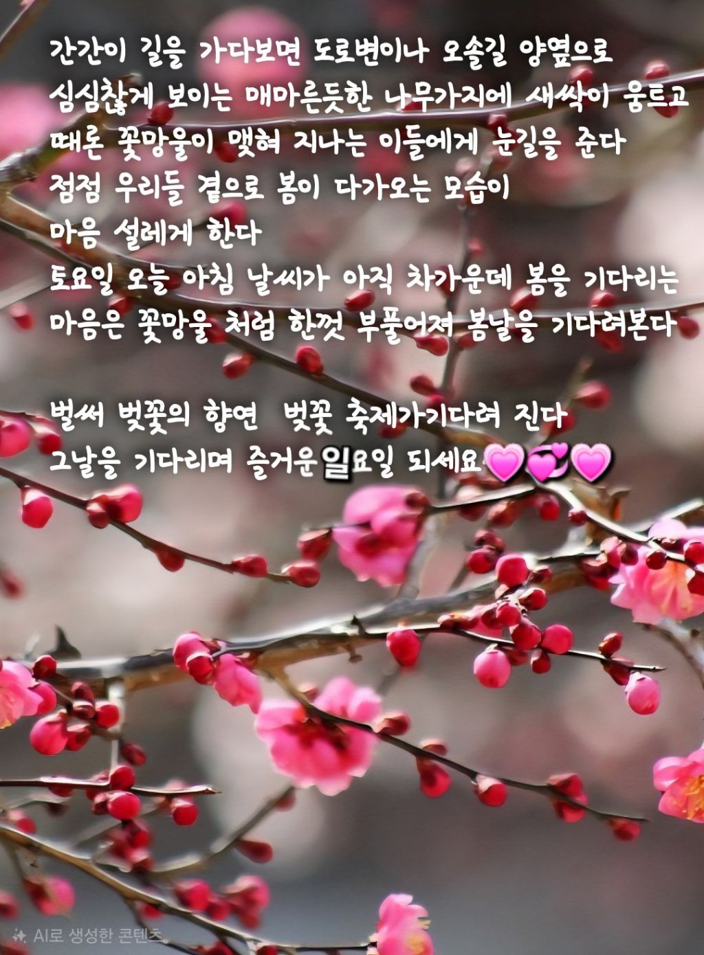 ♡3월29일 일요일 카톡인사! 작성자조운*|작성시간26.03.29|조회수34 목록 댓글 0 글자크기 작게가 글자크기 크게가 다음검색 현재 게시글 추가 기능 열기 북마크 공유하기 신고 센터로 신고 댓글 댓글 0 댓글쓰기 답글쓰기 댓글 리스트