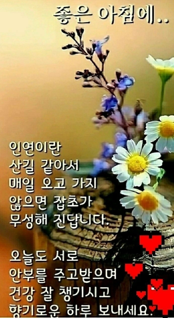 목요일,카톡인사 작성자시루산/인생역전,운영자|작성시간24.03.21|조회수246 목록 댓글 2 글자크기 작게가 글자크기 크게가 다음검색 현재 게시글 추가 기능 열기 북마크 공유하기 신고 센터로 신고 댓글 댓글 2 댓글쓰기 답글쓰기 댓글 리스트 작성자경기 광주 지부장 | 작성시간 24.03.21 본부장님 좋은 사진 감사합니다 좋은 일만 가득하길기원합니다 답댓글 작성자시루산/인생역전,운영자 작성자 본인 여부 작성자 | 작성시간 24.03.21 금산님, 이미지 확대 댓글 전체보기