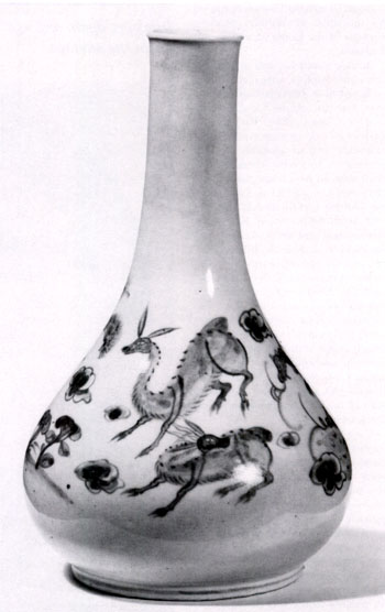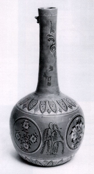 Secondly, the Koreans made a unique technical contribution to ceramic art by inlaying with different coloured clays to produce subdued but pleasingly contrasted decoration.
