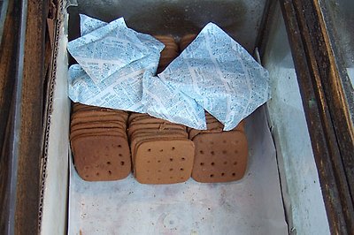 습기많은 일본에서 먹다남은 과자 등의 보관이 어려운데 이건 습기 먹을 일도 없고 해서 오랫동안 두고 두고 먹을 수 있어 좋다. 한국에도 가져와 선물을 해 준 적이 있는데, 성질 급한 한국인이 아닐까봐, 이게 뭐야~ 이런 걸 먹어? 하는 통에 내가 다시 받아와 다 먹었다. 역시 고기도 먹어 본 놈이 그 맛을 안다는 속담이라 할까.