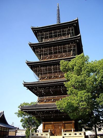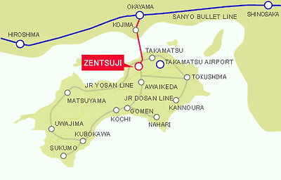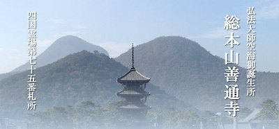 젠쓰지(善通寺)는 진언종(眞言宗)의 총본산입니다. 홍법대사(弘法大師=空海)의 탄생지이다.중국에서 귀국한 홍법대사가 807년에서 6년에 걸쳐 창건하였습니다. 진언종 최초의 근본도장입니다. 기슈(紀州) 의 다카노산(高野山), 교토의 토우지(東寺)와 더불어 대사의 3대 영지의 하나로 전국적으로 유명합니다. 시코쿠영지88개절(四国霊場八十八ヶ所)의 제75번째 순례지로 매년 많은 사람이 참배하러 옵니다. 동원과 서원으로 이루어진 경내의 총면적은 약 45,000㎡. 넓은 경내에는 여기저기 홍법대사를 기리는 사적과 보물이 전시되어 있습니다.
