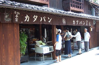 여러 가타빵이 있는데 그중에서도 이 가타빵이 제일 유명하다. 한국사람은 그저 빨리 씹어먹으려 하는데, 무식하게 씹어먹으려고 하다가는 이빨 다 부러진다. 딱딱한 것이 거의 돌덩이 수준이기 때문이다. 먹는 방법은 알사탕처럼 입안에서 살살 녹여 천천히 먹는다. 달짝지근한 맛과 계피향이 나는데, 그 맛이 오묘하게 끌린다. 처음에는 다들 먹기를 거부하지만, 한 번 맛들이면 그 맛에 매료가 되어 사족을 못 쓴다. 가끔씩 젠쓰지에 가면 꼭 들러 2-3봉지 가타빵을 사왔다.