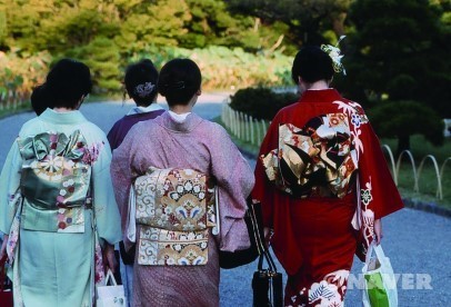 현재는 미혼, 기혼을 불문하고 뒤쪽에 사각 형태로 묶는다. 여성 오비의 종류는 계절과 장소에 따라 결정되는 것이 일반적인데, 정장용 오비는 금과 쓰즈레오리(綴織, つづれおり),19) 일상용으로 착용하는 것은 슈스(繻子, しゅす)20)나 하부타에(羽二重, はぶたえ)로 만들어진다. 오비는 기모노보다 중요한 요소로 여겨지며, 좋은 것은 가격이 기모노의 몇 배가 되는 것도 있다.