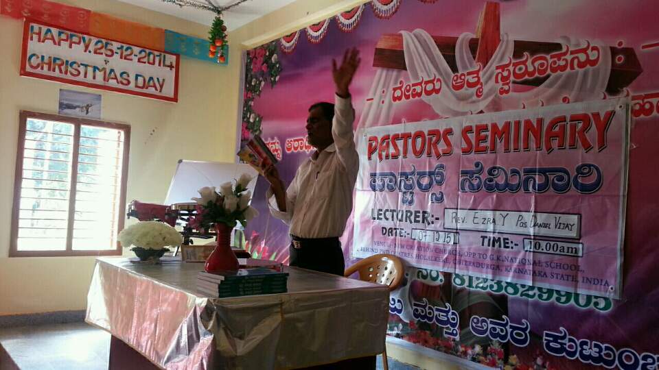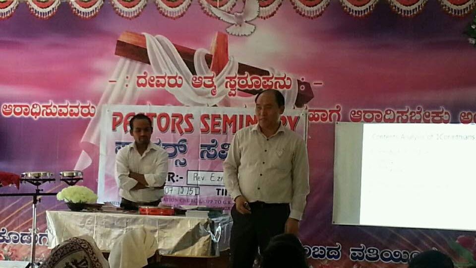 조금 있어 대략 9시 50분쯤 되니 몇몇 목사들과 열심을 내어 참석하는 평신도 자매들과 목사 사모들이 참석을 했습니다. 그 목사 가운데 라자쉐카르(Rajashekar)라는 나이든 목사에게 찬양 인도를 맡겨 세미나를 시작했습니다.
