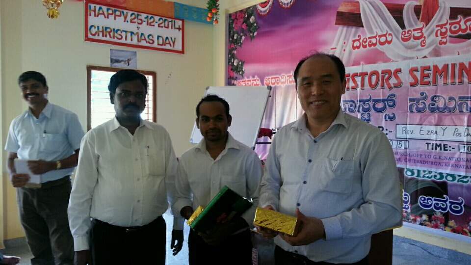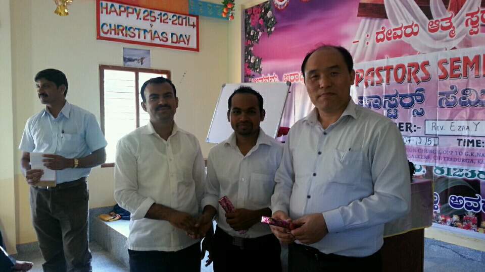 사실 이것을 하게 된 것은 인도 목사들에게 제가 지난달 세미나에서 그렇게 하도록 가르쳤습니다. “우리가 작년 8월부터 올해 12월까지 쉬지 않고 이 세미나를 갖고 있는데 당신들에게 많은 것이 주어졌다. 적어도 올해 크리스마스에서는 그 동안 수고했던 우리 스탭들을 위해 크지는 않지만 조그마한 선물은 하나씩 하는 것이 좋을 것 같다”고 했더니 생각했던 것보다는 더 크게 마음을 써서 이러한 행사를 갖게 해 주었습니다.