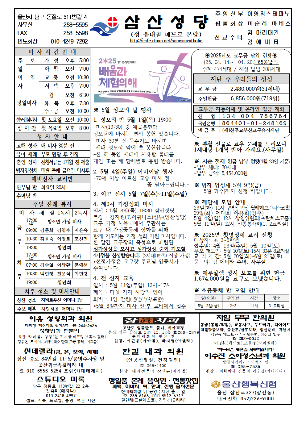 2025년 4월 27일 프란치스코 교황 추모 미사 작성자강은주|작성시간25.04.26|조회수113 목록 댓글 1 글자크기 작게가 글자크기 크게가 다음검색 현재 게시글 추가 기능 열기 북마크 신고 센터로 신고 댓글 댓글 1 댓글쓰기 답글쓰기 댓글 리스트 작성자시몬 | 작성시간 25.04.26 감사합니다 댓글 전체보기