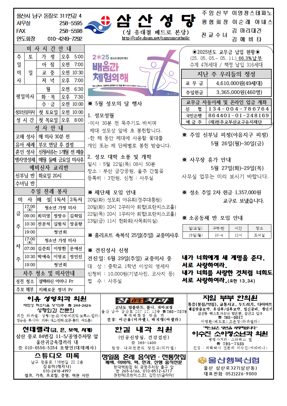 2025년 5월 18일 부활 제5주일 작성자강은주|작성시간25.05.17|조회수56 목록 댓글 1 글자크기 작게가 글자크기 크게가 다음검색 현재 게시글 추가 기능 열기 북마크 신고 센터로 신고 댓글 댓글 1 댓글쓰기 답글쓰기 댓글 리스트 작성자시몬 | 작성시간 25.05.17 감사합니다 댓글 전체보기