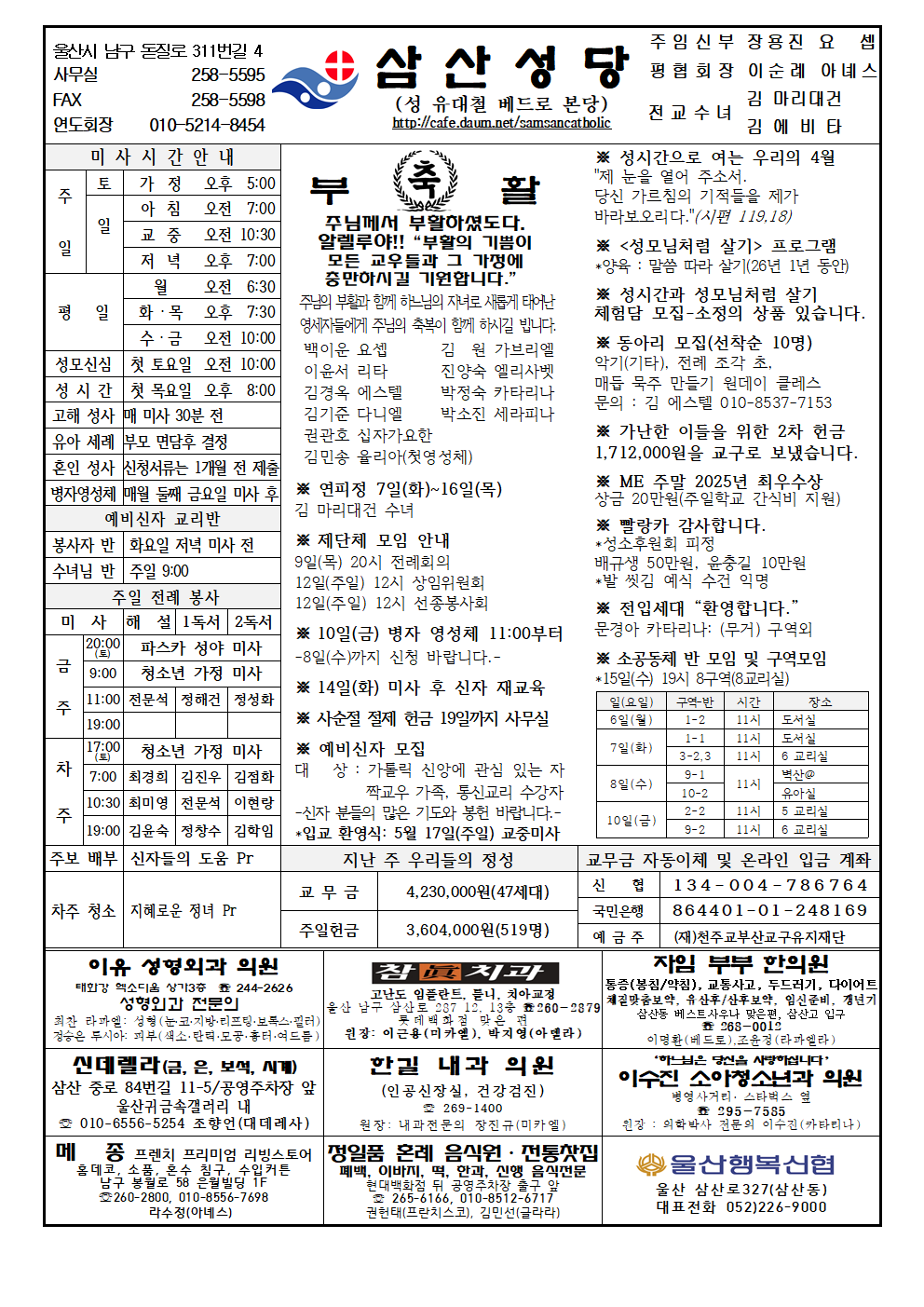 2026년 4월 5일 주님 부활 대축일 작성자강은주|작성시간26.04.05|조회수112 목록 댓글 1 글자크기 작게가 글자크기 크게가 다음검색 현재 게시글 추가 기능 열기 북마크 신고 센터로 신고 댓글 댓글 1 댓글쓰기 답글쓰기 댓글 리스트 작성자시몬 | 작성시간 26.04.05 감사합니다 댓글 전체보기