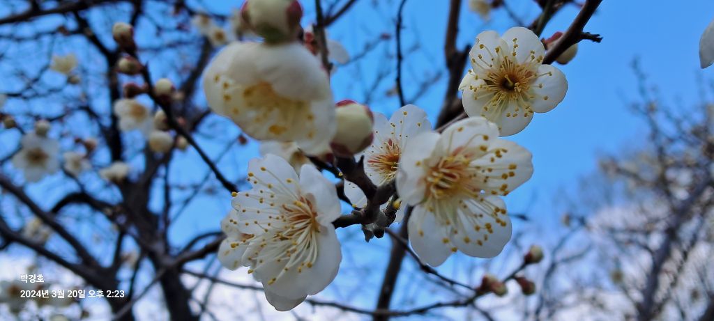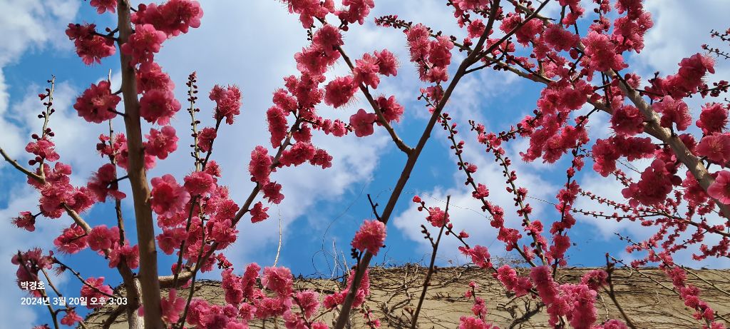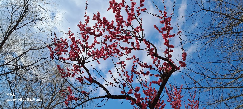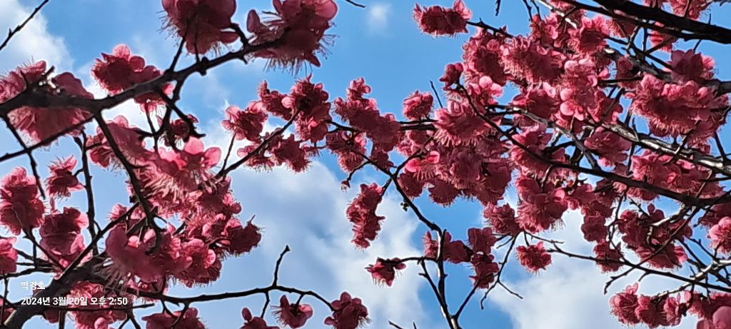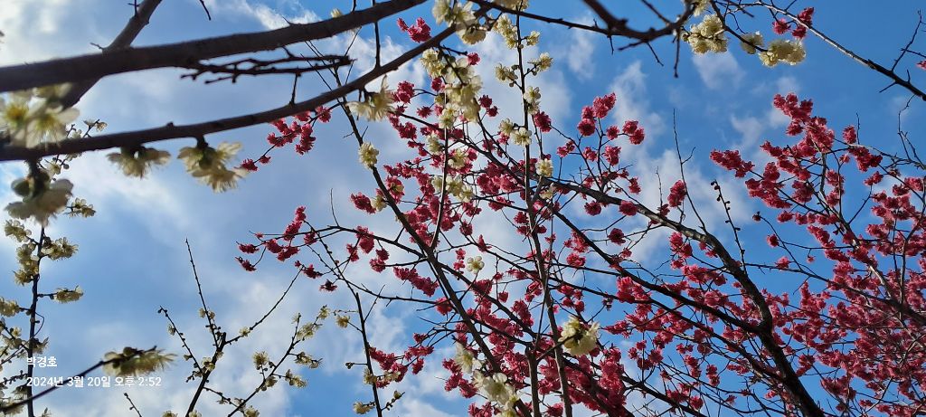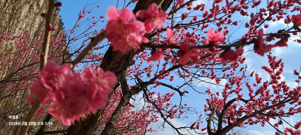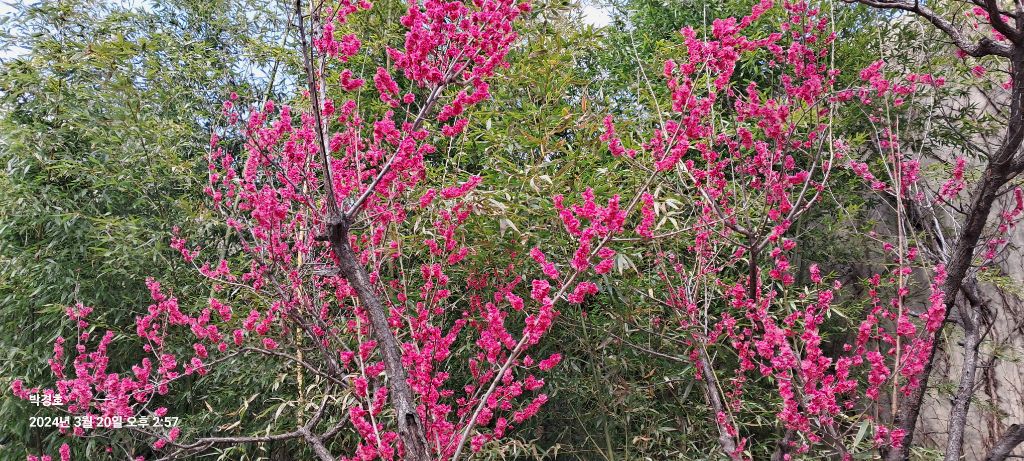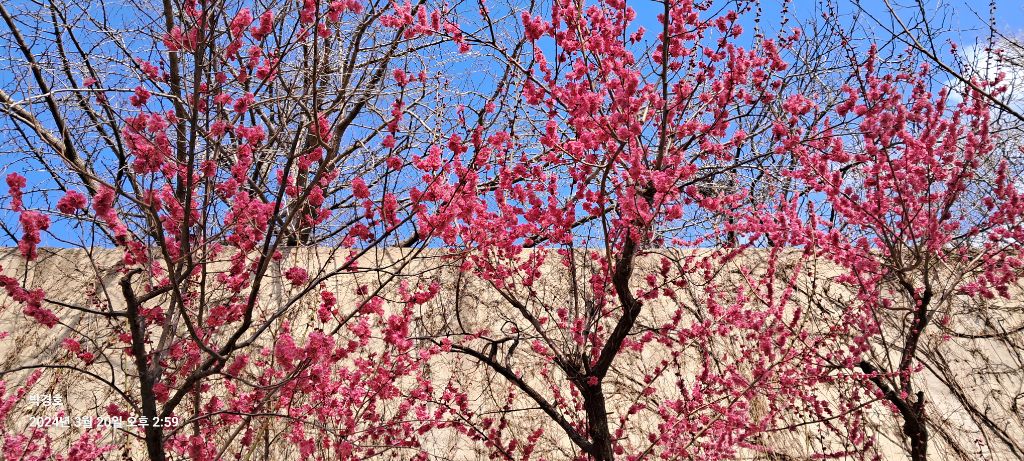서울의 봄소식.성동구용답동(용답역-신답역간)청계천변에 약1.2km 경남하동매실거리에는 매화와 대나무숲.수양버들.개나리가 예쁘게피었습니다