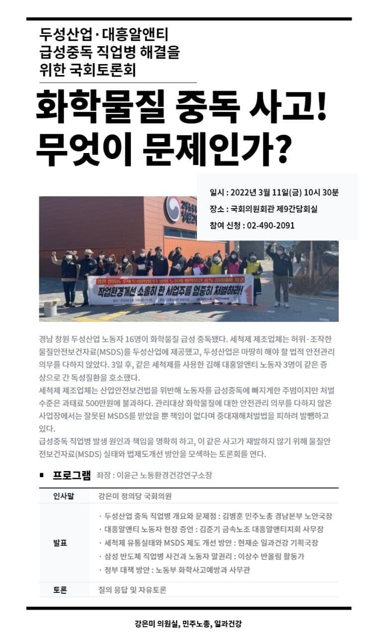 [두성산업·대흥알앤티 급성중독 직업병 해결을 위한 국회토론회]