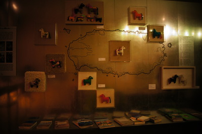 재활용 천으로 만들어진 조랑말 모양의 헝겊인형으로