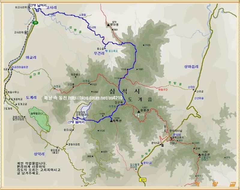 - 육백산+이끼폭포 지도...하산지점은 고사리 까지 입니다~