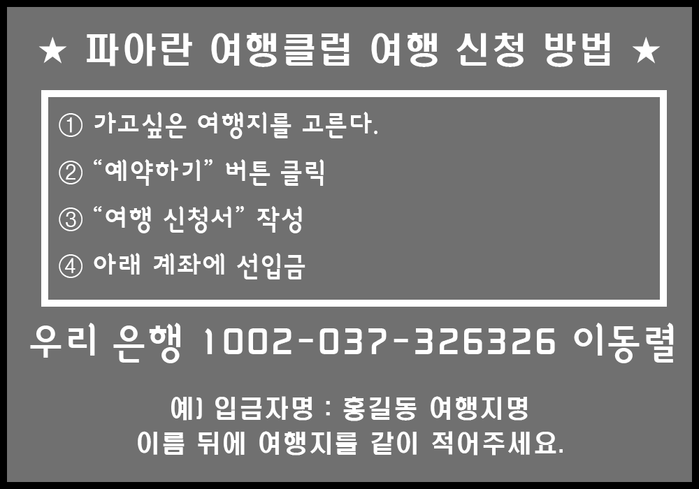 2026년 1월 ~ 2월 = 여행 일정표 예약 010-8866-1616 작성자파아란|작성시간22.04.11|조회수305,175 목록 댓글 0 글자크기 작게가 글자크기 크게가 2026년 1월 ~ 2월 일정표. 파아란 여행클럽db.blueweb.co.kr 다음검색 현재 게시글 추가 기능 열기 북마크 공유하기 신고 센터로 신고 댓글 댓글 0 댓글쓰기 답글쓰기 댓글 리스트