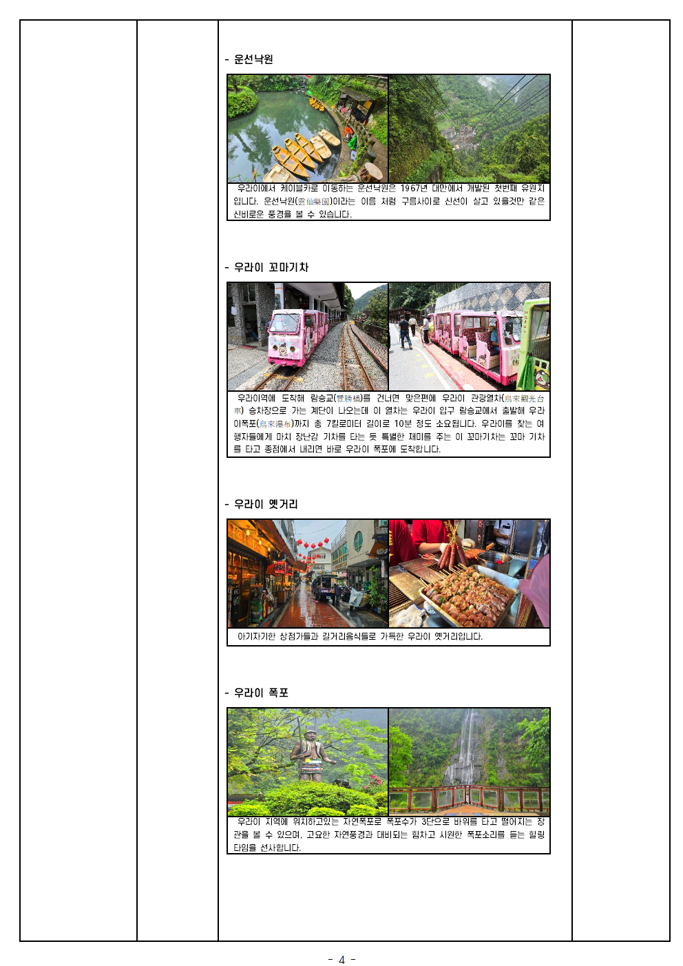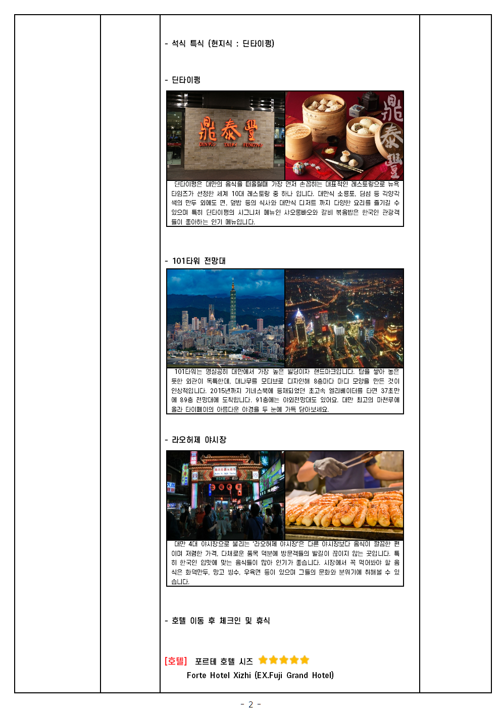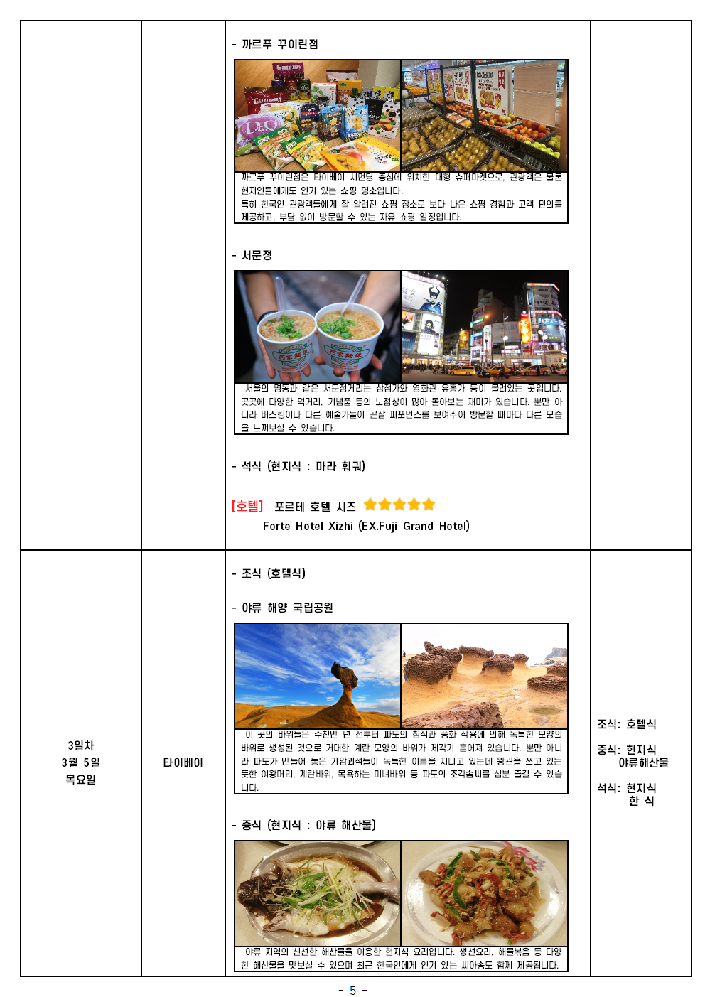 2026.03.03.(화) ~ 03.06.(금) ★ 대만 구석구석 핵심 여행 ★ 작성자파아란|작성시간26.01.06|조회수407 목록 댓글 0 글자크기 작게가 글자크기 크게가 ★ 간략 일정표 ★ ★ 상세 일정표 ★ 다음검색 현재 게시글 추가 기능 열기 북마크 공유하기 신고 센터로 신고 댓글 댓글 0 댓글쓰기 답글쓰기 댓글 리스트