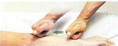 전완 후부측의 신근군에 평행한 선을 따라 같은 동작을 반복한다.