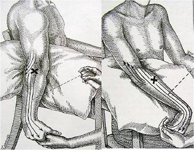 침 치료: 관련경혈: 상완요골근- 폐경(협백, 척택, 공최), 수근신근-소장경(양로, 지정, 소해, 양계, 편력, 온유, 하렴, 상렴, 수삼리, 곡지), 삼초경(양지, 외관, 회종, 삼양락, 사독, 천정)