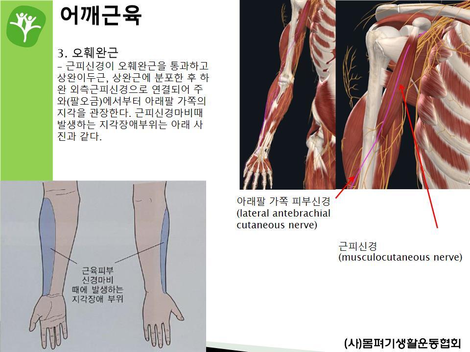 근피신경이 이근육을 통과하고 있어 피부분절에 감각이상을 일으킬 수 있습니다.