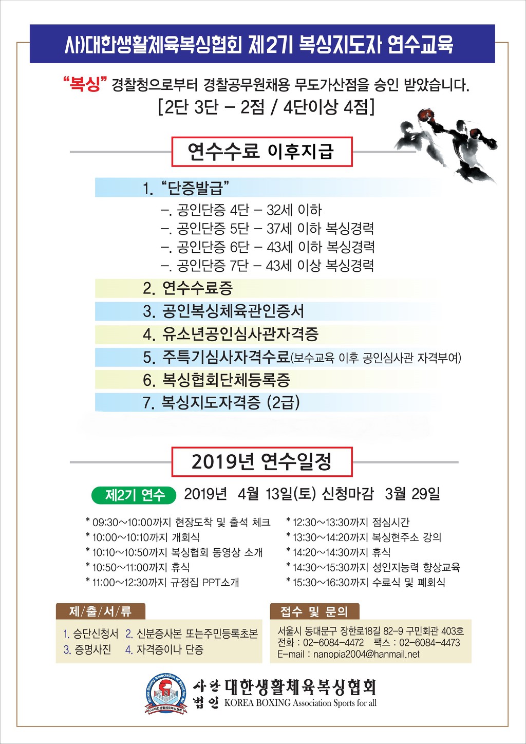 경찰공무원채용가산점승인단체 복싱지도자연수교육 작성자복싱협회|작성시간19.03.11|조회수257 목록 댓글 0 글자크기 작게가 글자크기 크게가 다음검색 현재 게시글 추가 기능 열기 북마크 공유하기 신고 센터로 신고 댓글 댓글 0 댓글쓰기 답글쓰기 댓글 리스트