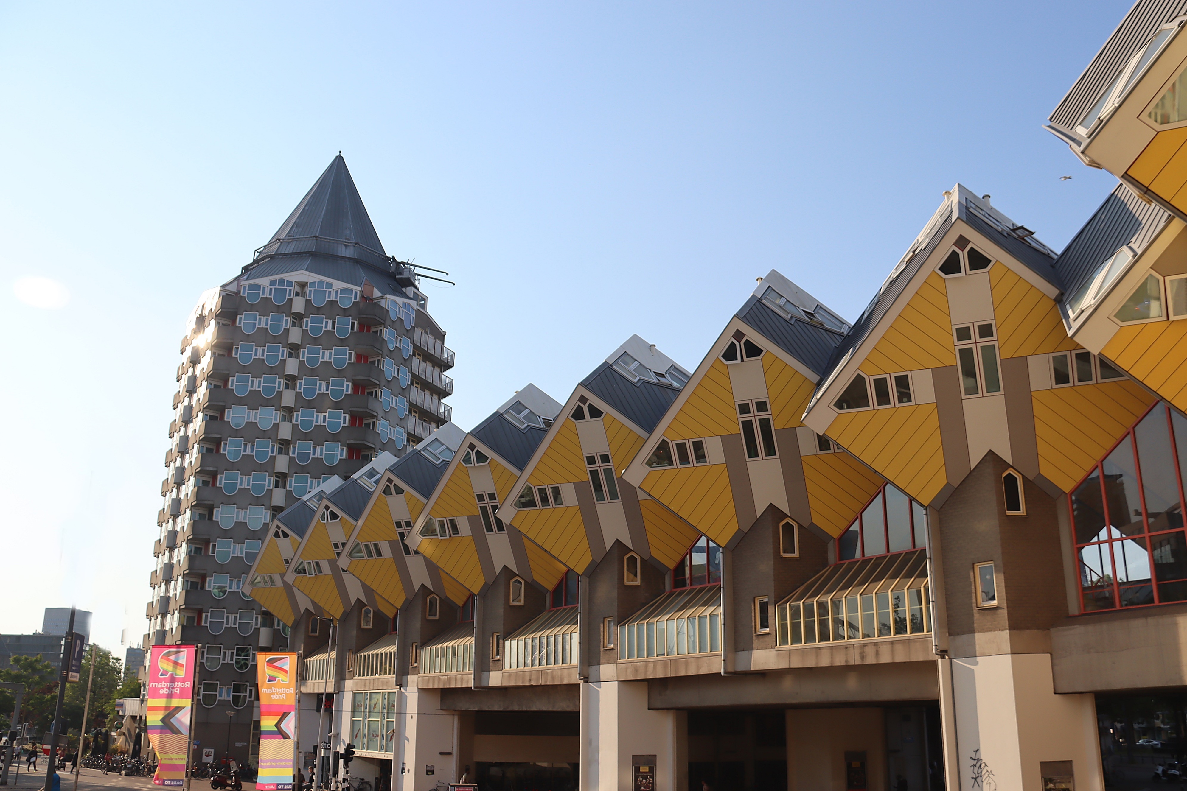 로테르담 지하철 블라크 역 앞에 있는 큐브하우스 .