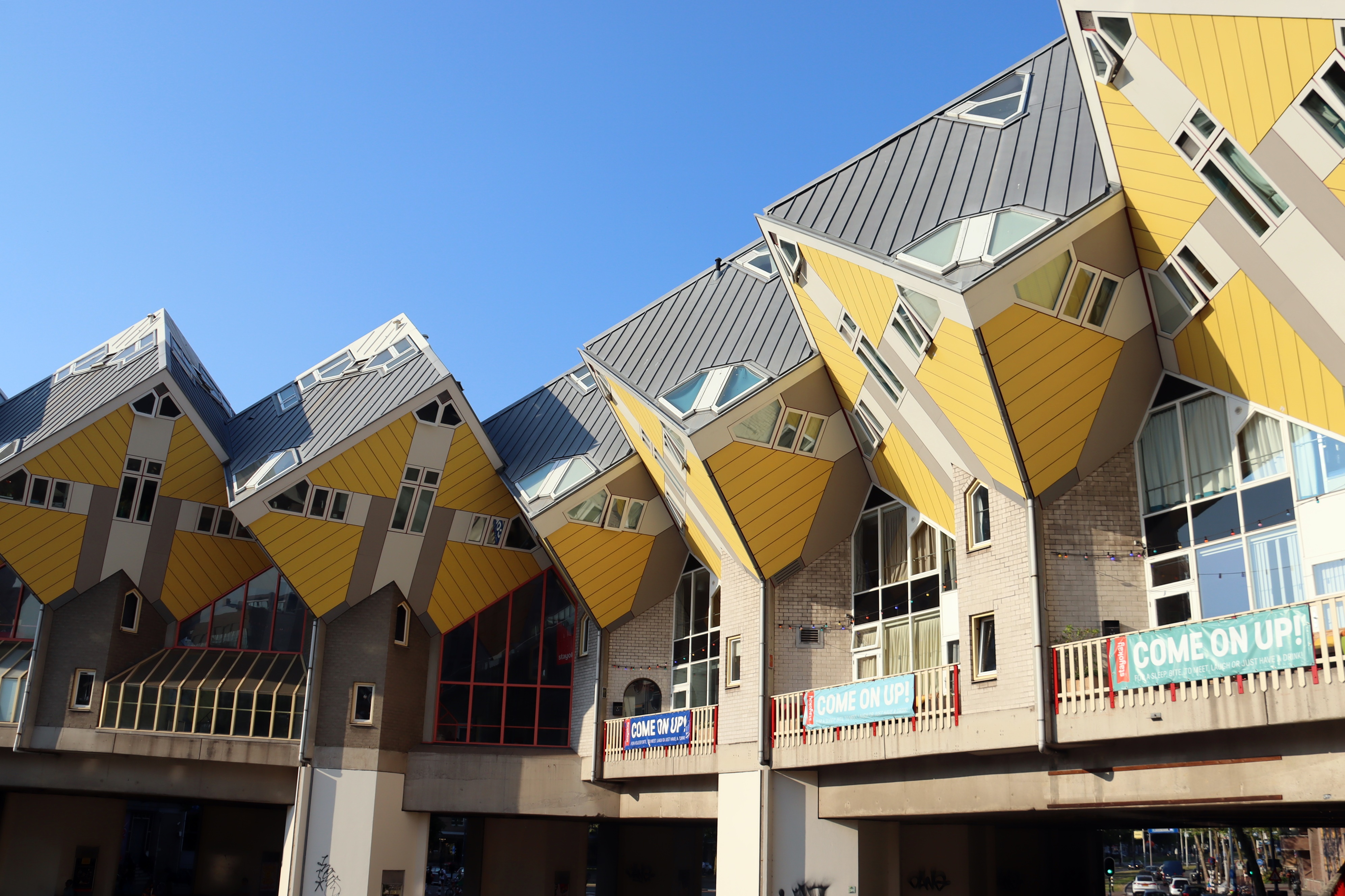 정육면체의 공간에 사람이 산다는 것도 놀랍지만 단지가 도로를 가로지르는 육교 위에 건설됐다는 점도 특이하다