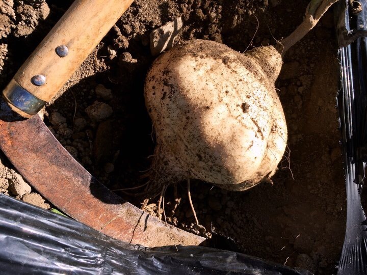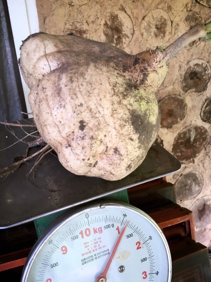 줄기가 넝쿨콩 같다. 꽃은 팥이랑 닮았다. 꼬투리는 영락없이 콩이다. 줄기를 자르고 아래를 내려다보니 땅을 불끈 치켜 올려 놓았다. 호미로 살살 긁어주니 뭐랄까 강화순무 닮은 팽이 닮은 하얀 뿌리다. 아이 머리통만한 것도 있다. 캐면서 양파보다 더 편하게 껍질을 벗겨 씹어먹었다. 야금야금 하나를 다 먹어도 속이 아리지 않는다. 외려 입안에 침이 가득 고여 아밀라아제와 어울렸다. 이 놈과 첫 만남은 놀라움 자체다.