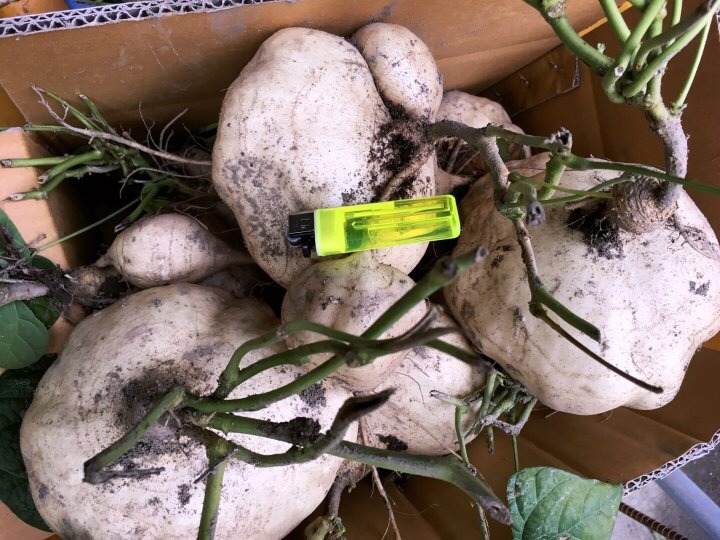 지금 한창 캐고 있습니다. 1톤만 팔겠습니다. 예약하시면 9월 5일 일괄 보냅니다. 1개가 1kg 내외입니다. 날이 추워지면 상하기 쉬우니 추석 전에 모두 캡니다.