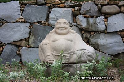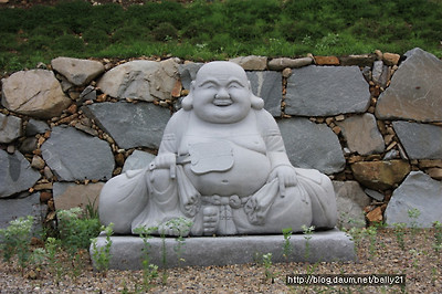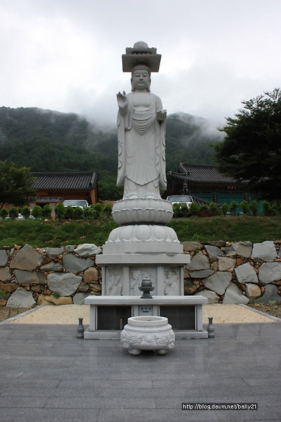 무심사 입구에서 부드러운 자태로 내려보고 있는 석가모니상을