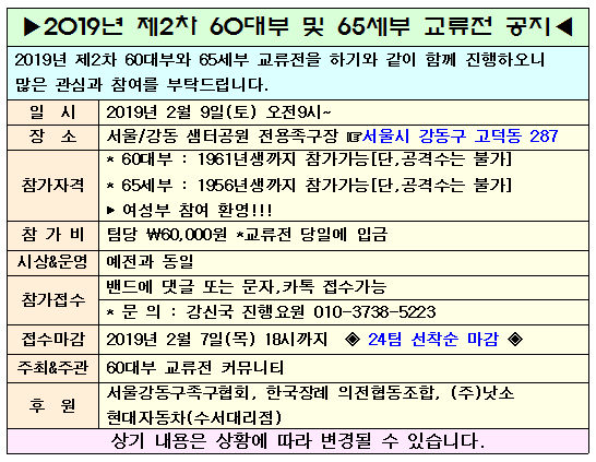 [스크랩] 2019년 제2차 60대부 및 65세부 교류전 공지!!! 작성자장하영|작성시간19.02.02|조회수26 목록 댓글 0 글자크기 작게가 글자크기 크게가 다음검색 스크랩 원문 : 족구100인클럽 현재 게시글 추가 기능 열기 북마크 공유하기 신고 센터로 신고 댓글 댓글 0 댓글쓰기 답글쓰기 댓글 리스트