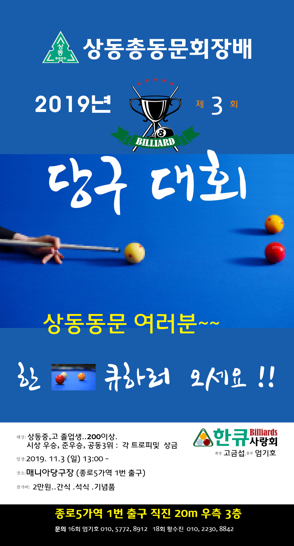 [스크랩] 제3회 상동총동문회장배 동문 당구대회 개최-종로5가역 1번 출구 작성자장영근|작성시간19.10.24|조회수53 목록 댓글 0 글자크기 작게가 글자크기 크게가 다음검색 스크랩 원문 : 상동중고교 현재 게시글 추가 기능 열기 북마크 공유하기 신고 센터로 신고 댓글 댓글 0 댓글쓰기 답글쓰기 댓글 리스트