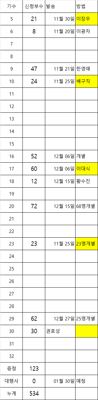 1.기수별로 명단을 취합하여 주문-개별주소지로 발송가능