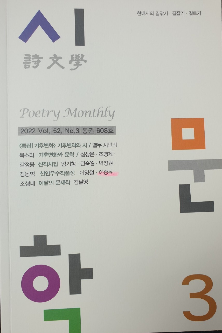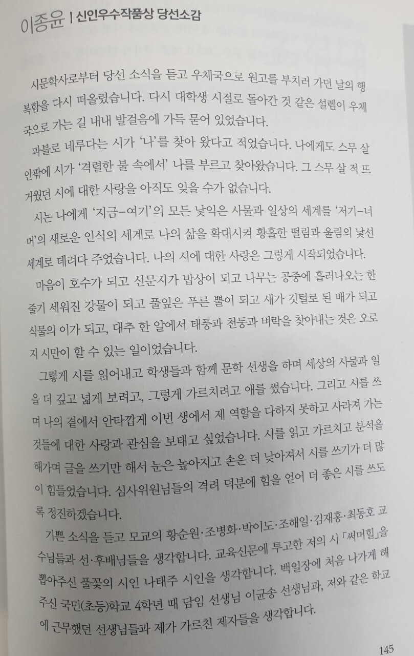 2021년 말에 출간한 텅스텐계곡 사람들에 수록된 이종윤학우의 시를 읽고 정유준 시인이 추천하여 이번 기회가 만들어지게 되었다. 정유준 시인에게 감사드리며 이종윤 동문에게 축하의 박수를 보냅니다.