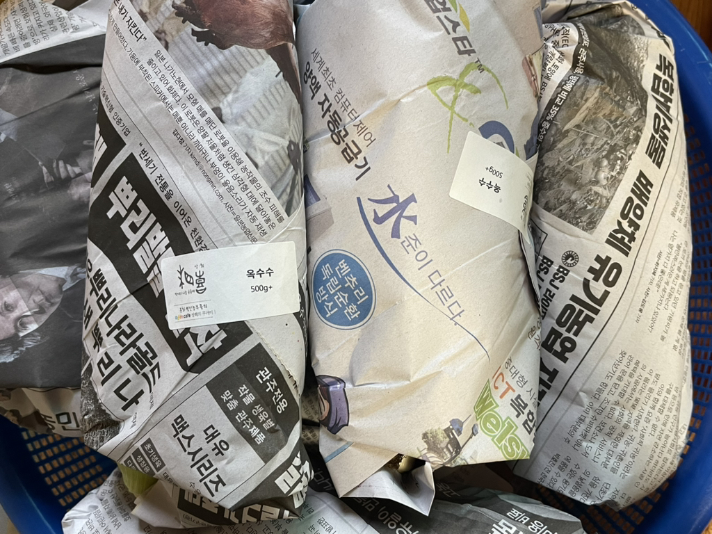 옥수수를 선별하고, 그 밖의 물품들 못다한 포장도 마저 했어요.