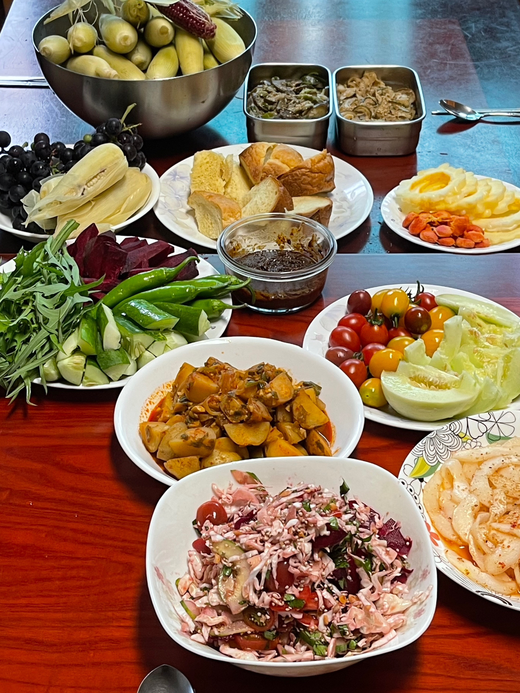 들풀님이 미리 반찬을 몇 가지 준비해오신 덕분에 식사 준비가 후딱 끝났네요!