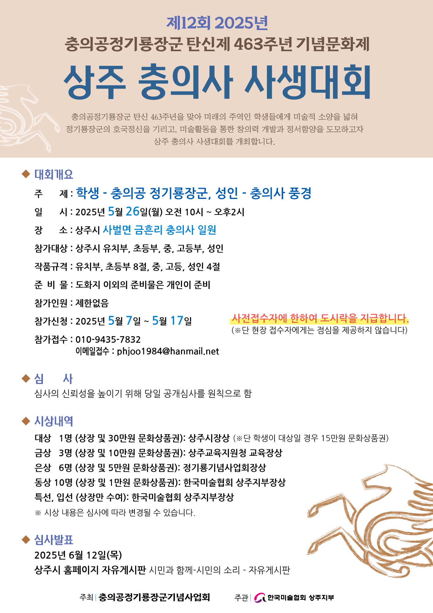 2025 제 12회 상주 충의사 사생대회 작성자김호희|작성시간25.04.30|조회수58 목록 댓글 0 글자크기 작게가 글자크기 크게가 다음검색 현재 게시글 추가 기능 열기 북마크 공유하기 신고 센터로 신고 댓글 댓글 0 댓글쓰기 답글쓰기 댓글 리스트