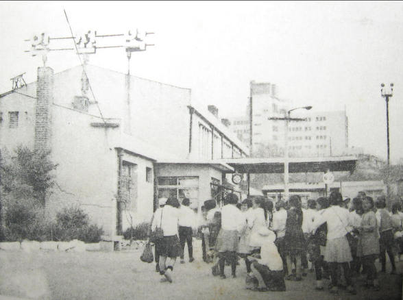 ▲ 40년전 인천역에서 수학여행단이 내려 개찰구를 통해 나가려고 하고 있다. 역사 뒷 쪽에 높이 보이는