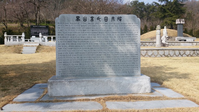 상산 김씨 시조의 단소는 보기가 흔하지 않은 장방형(長方形) 봉분(封墳)이고, 문인석(文人石), 사자석(獅子石), 장명등(長明燈)이 설치되어 있으며, 단소 앙 옆에는 일백 년에 가까운 나이를 자랑하는 배롱나무 2그루가 운치를 살리고 있다.