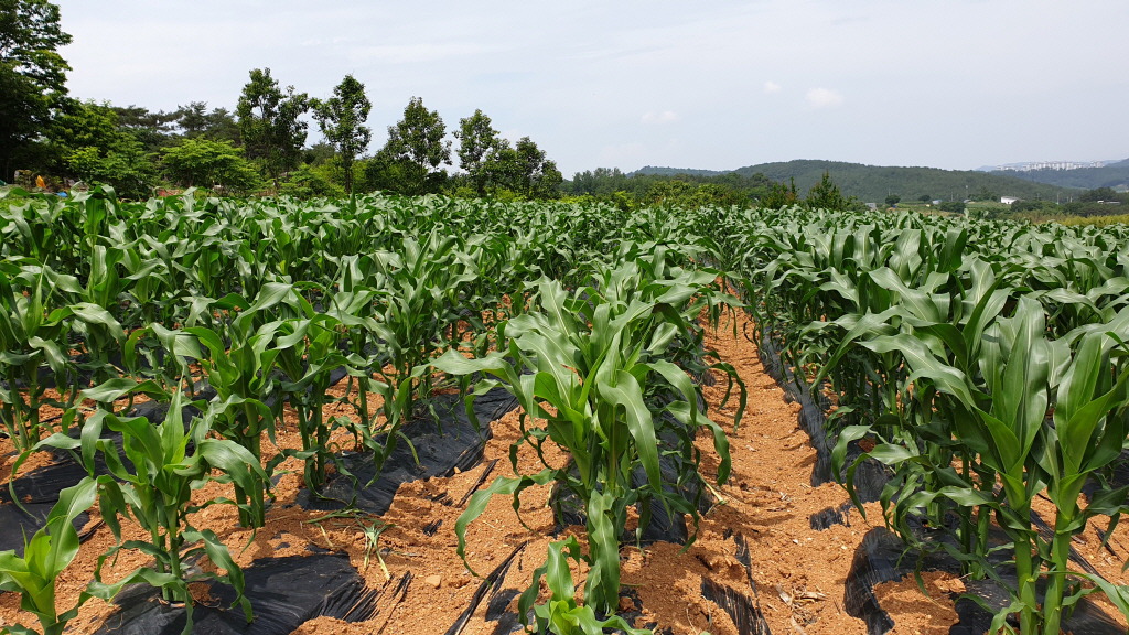 감자밭 옆의 옥수수도 싱싱했다. 어릴 때 옥수수 대의 껍질을 벗겨내고 속의 대를 씹으면 단맛이 났다. 먹을 것이 없어 배고프던 시절에는 그것을 과자인양 맛있게 먹던 생각에 옥수수 밭 옆에서 한참을 서 있다가 팔각정으로 향했다.
