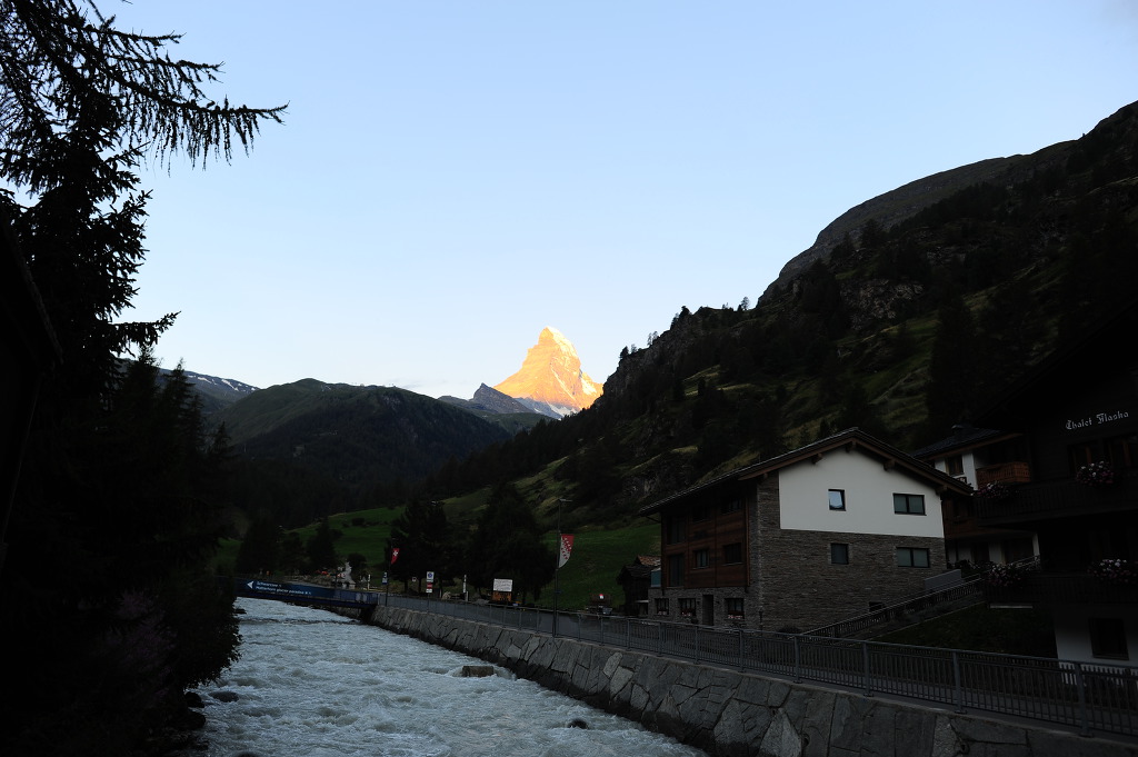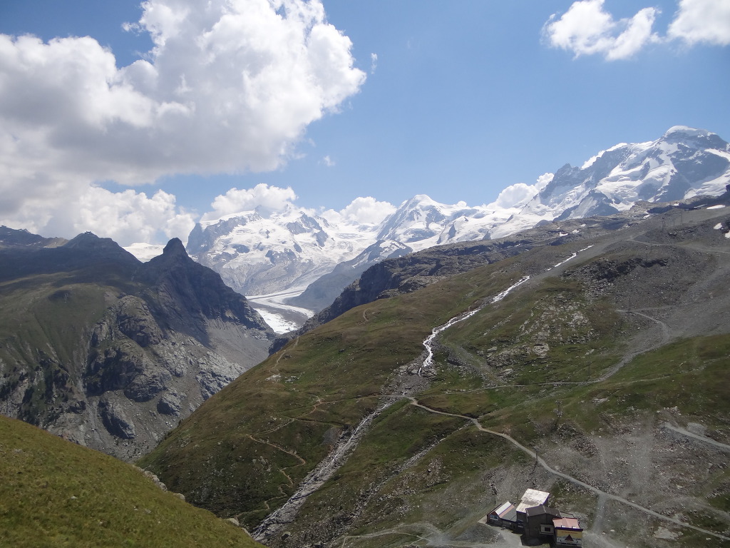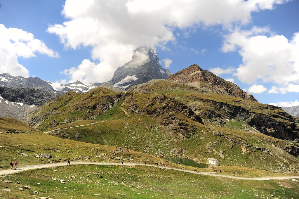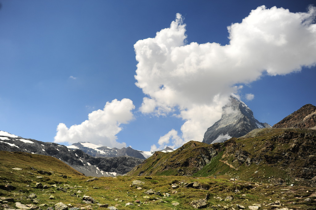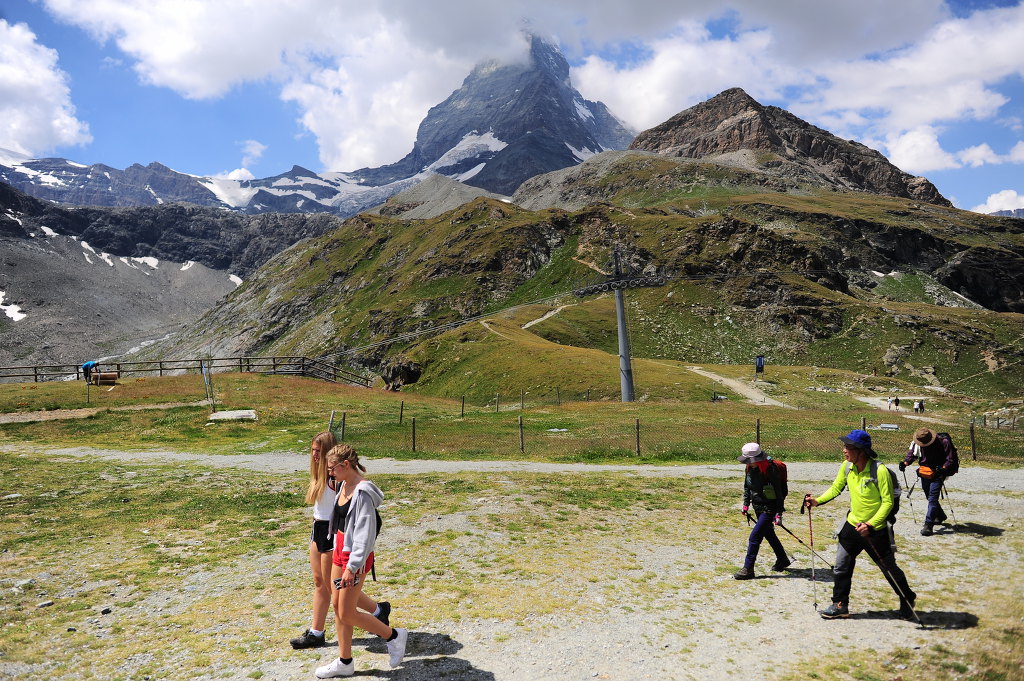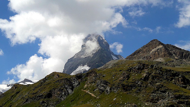 마터호른은 바로 가까이 다가와 있으며 깨끗하던 마터호른도 오후가 되면서 수증기로 인해 구름이 휘감았다가 펼쳐지기도 한다.
