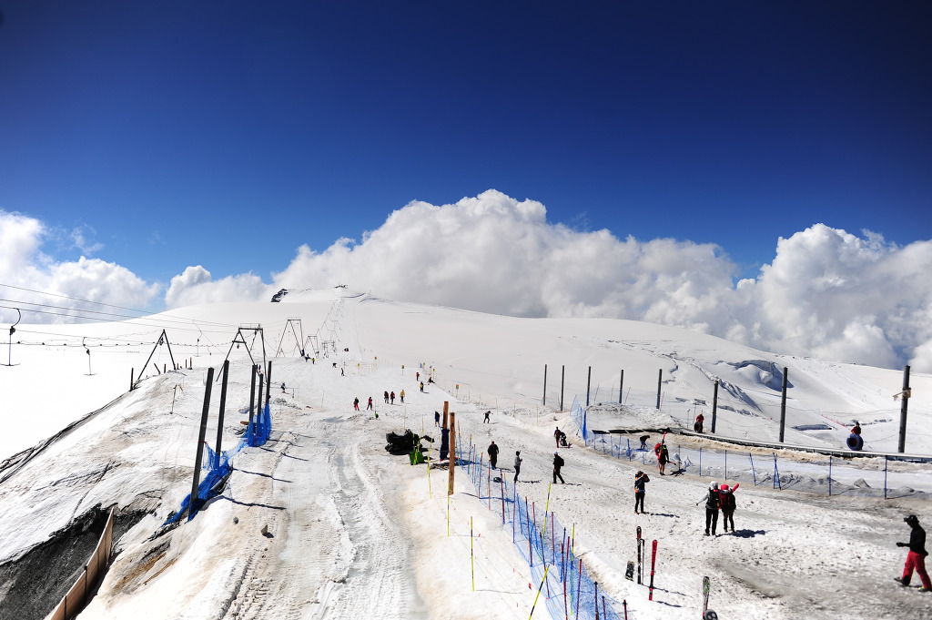 그리고 이 더운 여름에 스키장에는 많은 스키어들이 어울려 즐거움을 만끽하고 있는데 스키장 건물이 있는 곳은 이탈리아 땅이라고 한다.