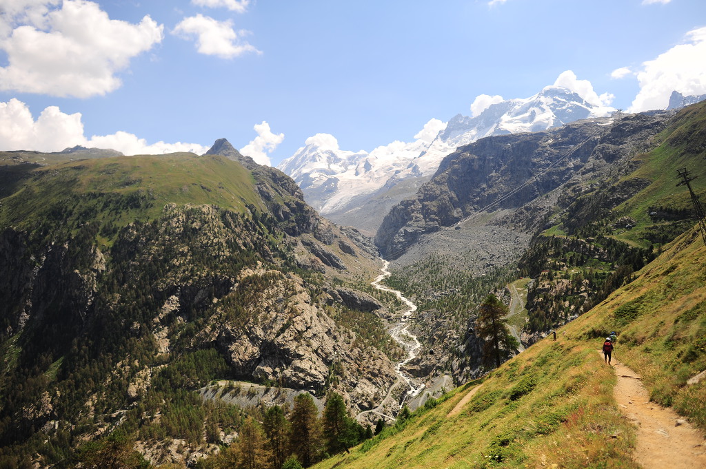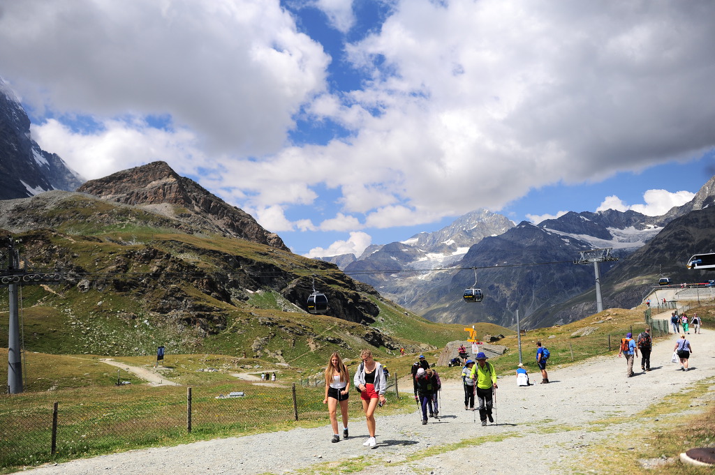 빙하와 만년설이 녹아 내린 회백색의 강물이 마터 피스파강을 우렁차게 흘러 내리고, 빈켈마텐까지 도보로 가서 곤돌라를 타고 트로케너슈테그까지 이동한 후 케이블카로 환승하여 전망대까지 올라가게 된다.