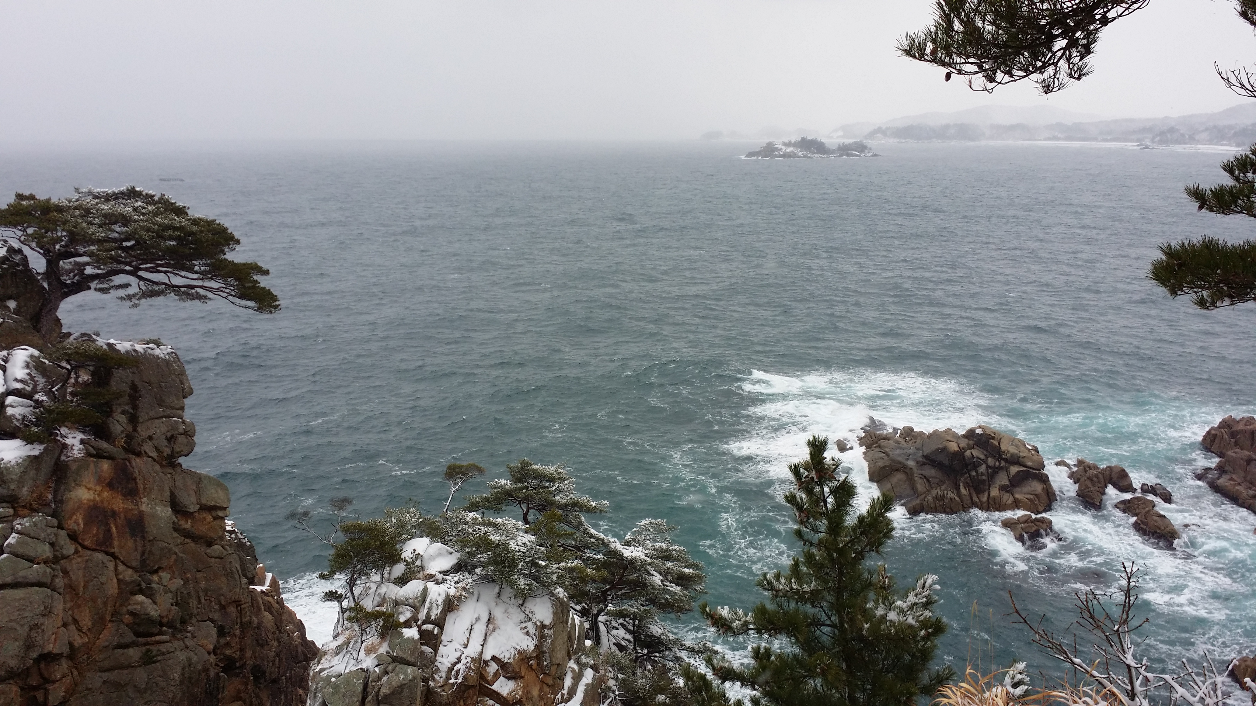 ‘정자위에 앉아 하염없이 바라보면 물과 바위가 서로 부딪쳐 산이 무너지고 눈을 뿜어내는 듯한 형상을 짓기도 하고 갈매기 수백 마리가 아래위로 돌아다니기도 한다. 그 사이에서 일출과 월출을 바라보는 것이 더욱 좋은데, 밤에 현청에 드러누워 있으면 바람소리 파도소리가 창문을 뒤흔들어 마치 배에서 잠을 자는 듯하다.’ 신정일의 <해파랑 길 인문기행>에서