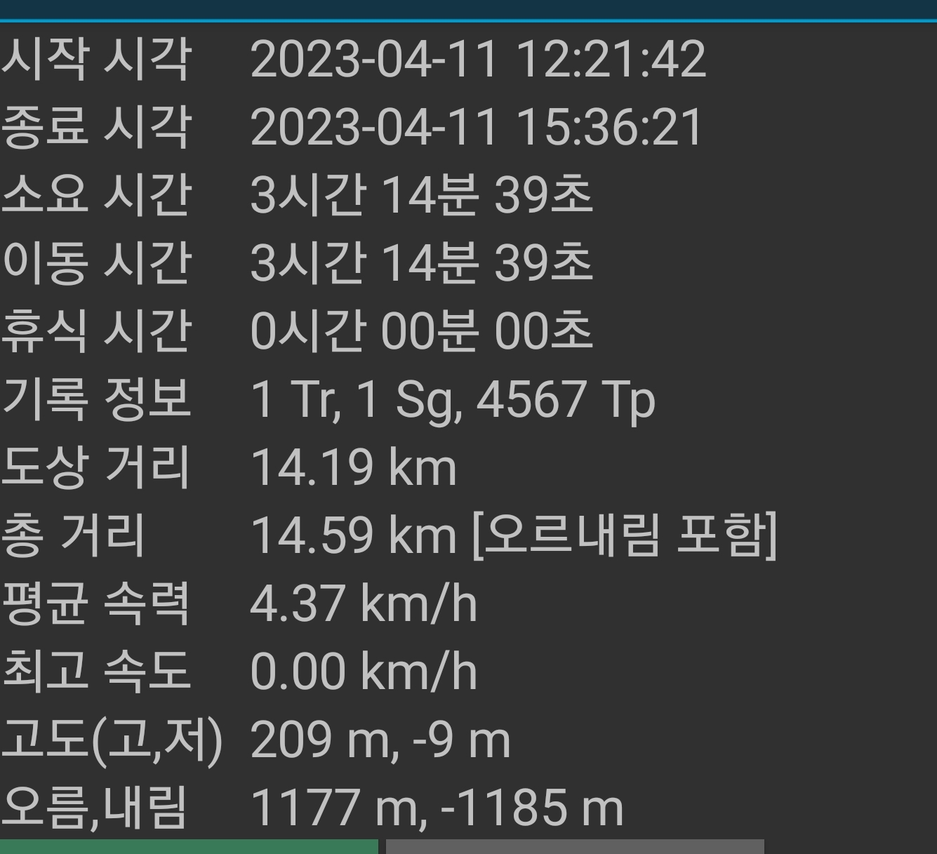 아래에 본 통계의 gpx를 첨부하니 확인해 보시면 좋을거 같습니다.